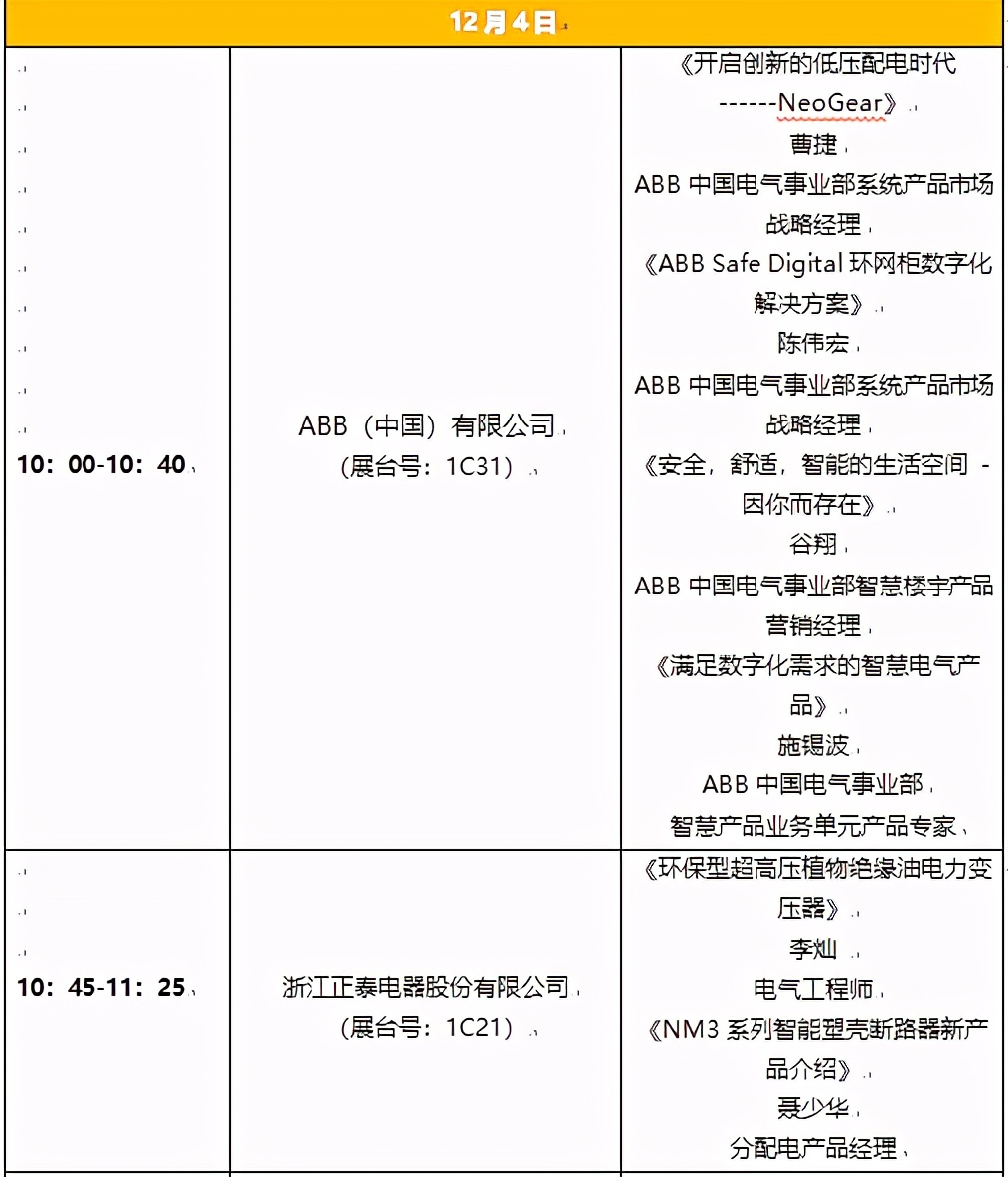 作为电力界的年度盛事, EP电力展为业内人士集齐各大龙头企业的新产品, 包括(按出场顺序) 日立ABB电网、珠海康晋、施耐德电气、上海良信、ABB、正泰、维拉萨及杜邦等,带来各个热门应用领域先进技术的发布会,干货满满, 业内人士可于N2馆新产品荟萃廊免费参加: